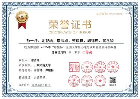 此次“厚粲杯”全国老员工心理与认知智能测评挑战赛多项荣誉的取得,是公司“以赛促教、以赛促学、以赛促创”育人理念的生动实践。未来,公司将继续深化教学改革,培养更多优秀人才,助力师生在全国舞台上持续绽放“山师风采”,续写学院发展的奋进篇章!