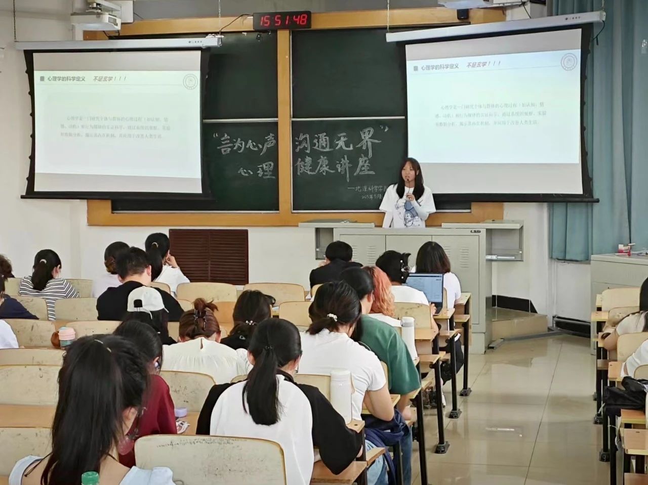 5月16日下午,公司心理健康教育研究社在南区5408教室开展了主题为“从山川湖海到心灵图景”的心理科普宣讲活动。