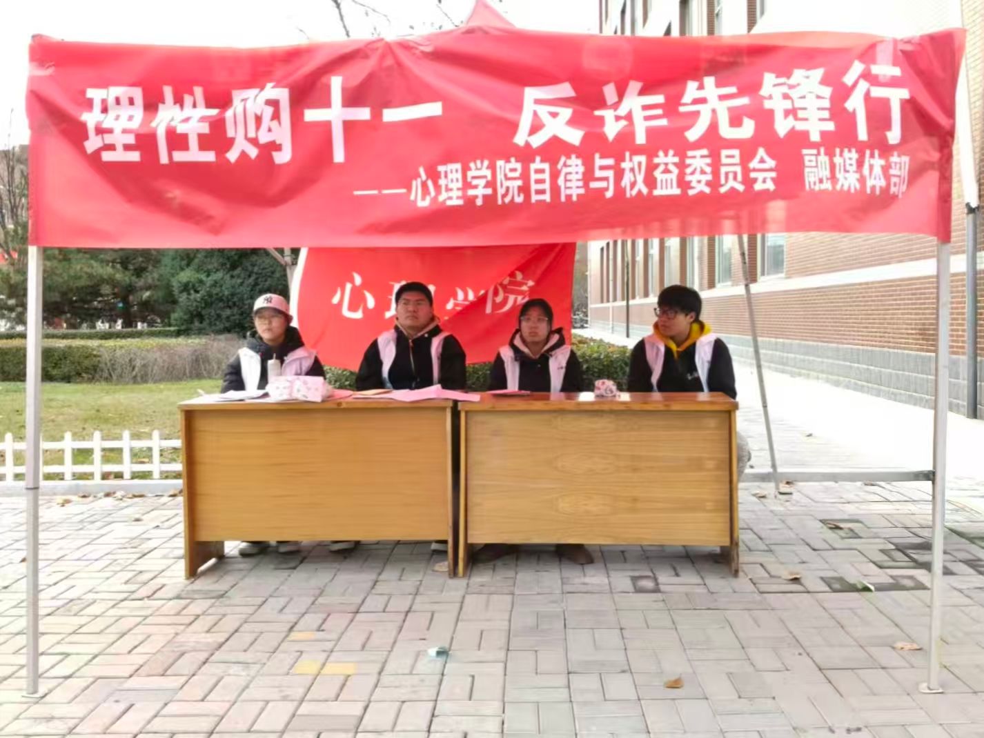“双十一”消费浪潮来袭,如何在享受优惠的同时避开陷阱?为帮助同学们树立理性消费观念、提升反诈防骗能力,11月11日上午,公司自律与权益委员会与融媒体部在四、五号教学楼之间,组织开展了“理性点亮双十一,反诈护航消费季”特色教育活动。